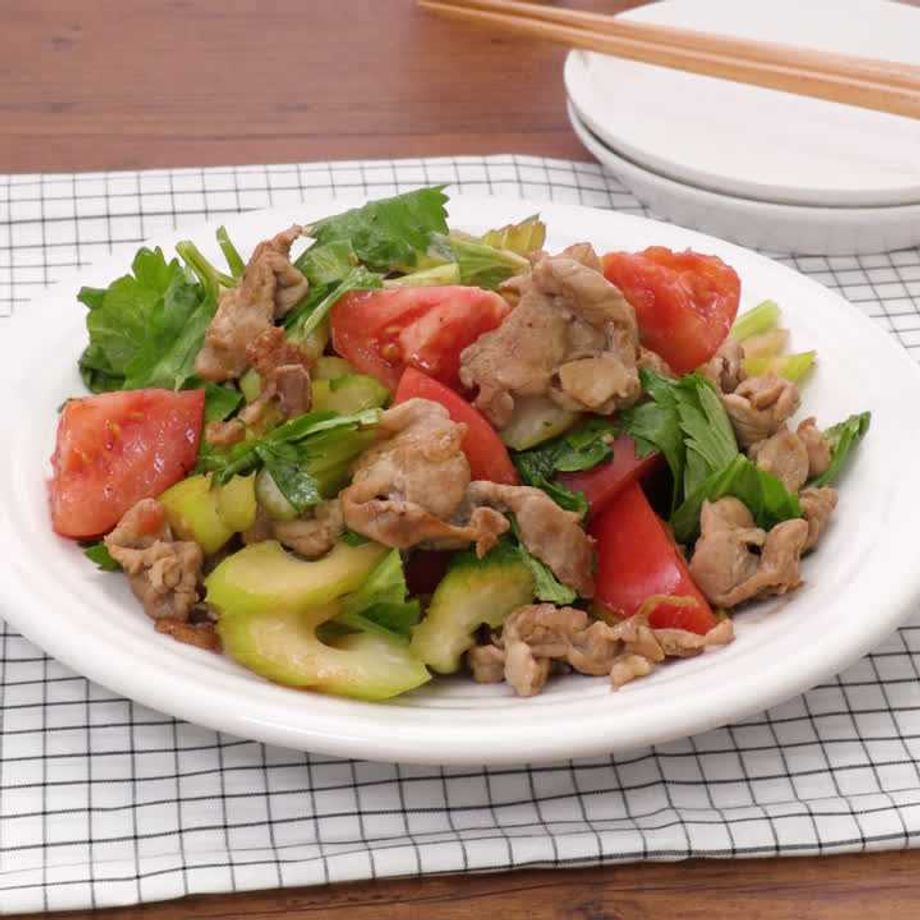 シャキシャキ食感のセロリがやみつき!最後にトマトをさっと合わせることで彩りと程よい酸味をプラスします。