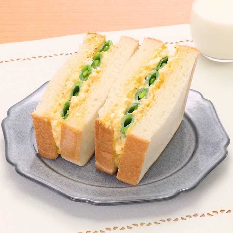 朝ごはんに作りました。スナップエンドウが入った卵サンドは初めて食べたのでいつもと違った卵サンドだなと思いました。食べてみルトスナップエンドウが消えてしまいあとになると卵しか残ってない味わいがしました。美味しかったです。