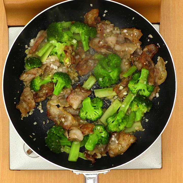 豚バラ肉のコクとブロッコリーのボリュームで、少ない材料でも満足の1品に♪豚バラ肉はカリッと焼いて食感にもメリハリを出します。