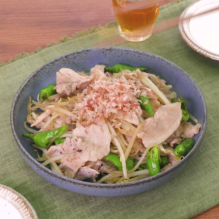 もやしと豚肉のししとう炒め