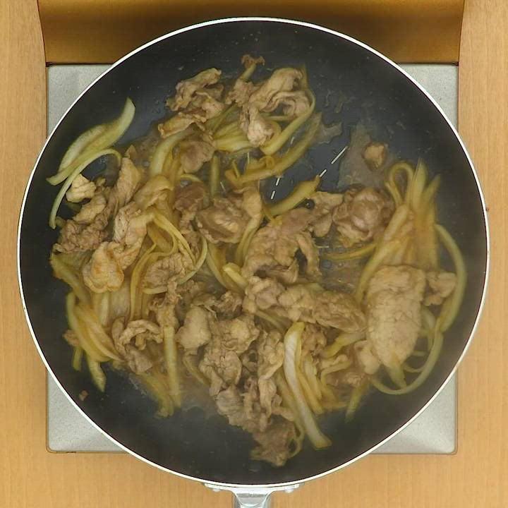 フライパンにサラダ油を入れて熱し、豚肉を入れて肉の色が変わるまで中火で炒める。玉ねぎを加えてしんなりとするまで炒め、☆を加えて炒め合わせる。