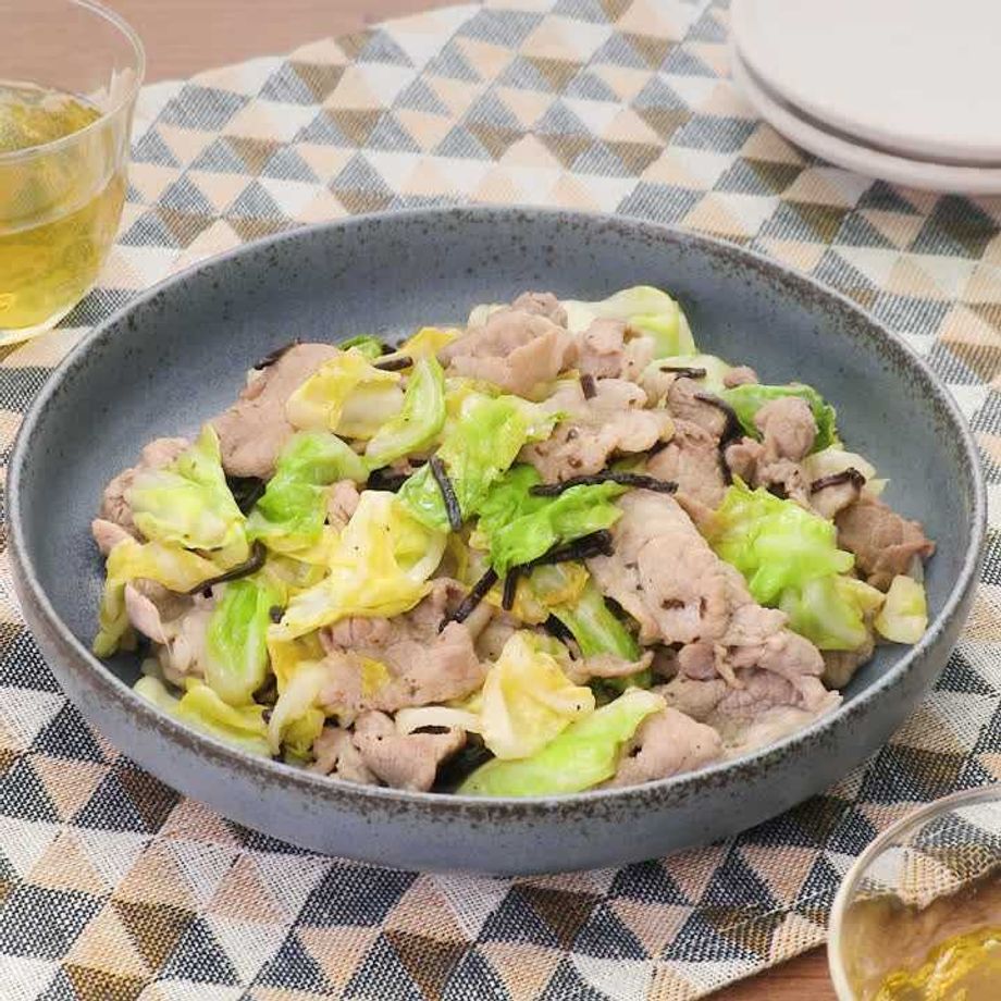 豚こまと春キャベツの塩昆布炒め