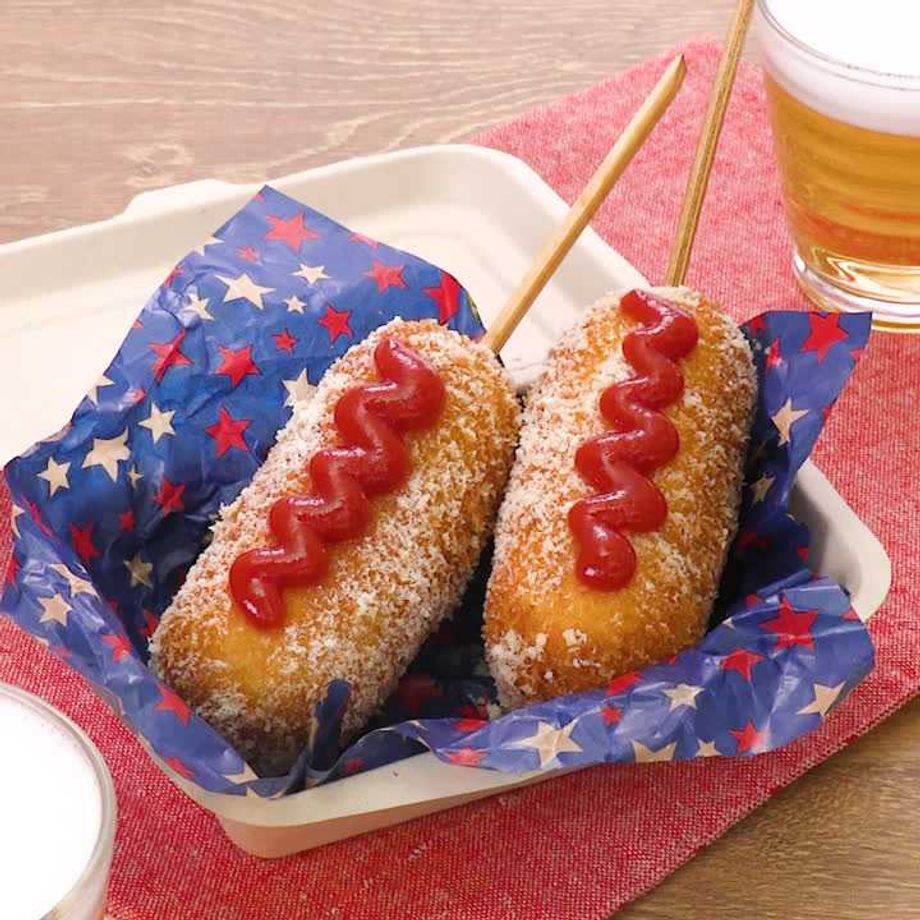 人気の韓国のおやつ「ハットグ」を4種のチーズを使ってアレンジしました!一口かぶりつけば、チーズがとろ〜りあふれ出します。チーズ好きにはたまらない、特別な一品です。