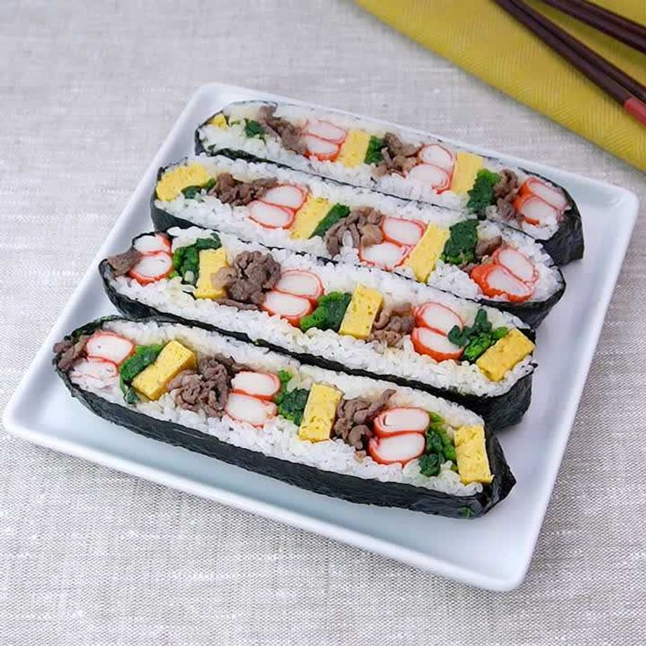 難しすぎました。 キンパは,私的には好きだったのでお母さんと作ってみたのですが、半分に切るとバラバラと形が崩れてしまって修正できませんでした。 私的には改良してもらえるとありがたいのですがみなさんはどう思いますか? お母さんが珍しいと言ってくれたので私はロングキンパの材料で海苔巻きを作ってみました。