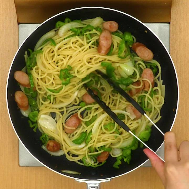 ピーマンとソーセージの和風パスタ