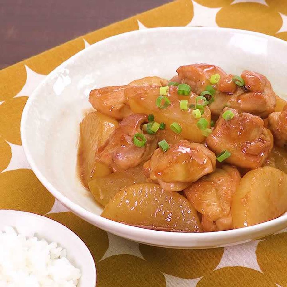 鶏もも肉と大根を甘辛い炒め煮にしました♪旨味のある鶏もも肉と、柔らかく味のしみこんだ大根がごはんのおかずに人気の煮物です!具材を弱火でじっくりと煮込んで旨味を引き出すことがおいしさの秘訣。お好みで茹で卵を入れて煮付けてもよく合います。