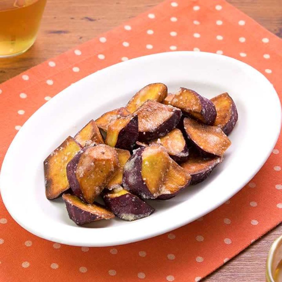 揚げ焼きにしたさつまいもにバターをからめ、粉チーズなどで味付けをした一品です。ほっくりとしたさつまいも、バターとチーズのコクと塩気、砂糖の甘味が相まって、くせになるおいしさです!はちみつやケーキシロップで甘味をつけるのもおすすめ♪おやつにもなる一品です!