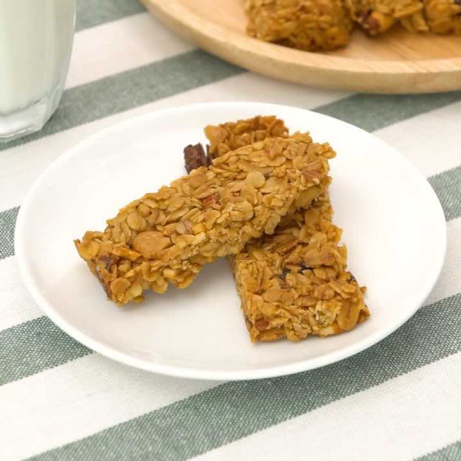 余ったオートミールを大量消費出来て、とってもおいしいです! レビューを見て型に入れて平らな底のコップでぎゅうぎゅうに押し固めたら崩れることなく出来ました!