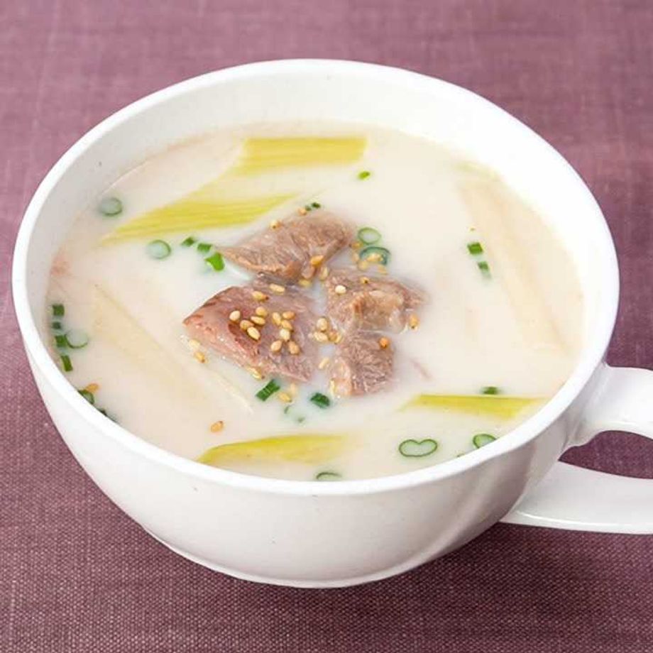 辛い料理の合間に飲みたいあっさりおいしいコムタンスープ風のご紹介です!本来コムタンスープとは、牛すじ肉や内臓、牛骨などの具材を長時間煮込んで作る韓国料理。牛スープの素を使用してご家庭でも短時間でできるようにアレンジしました。ご飯を入れてコムタンクッパ風にしたりラーメンを入れても♪ぜひお試しください。