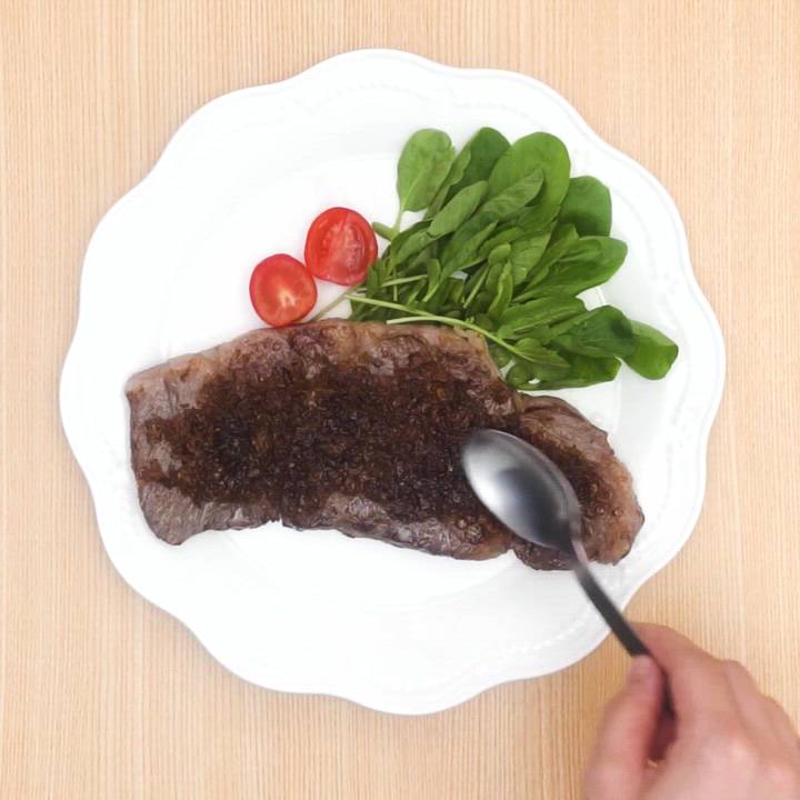 器にステーキを盛り、ソースを全体に薄く塗る。