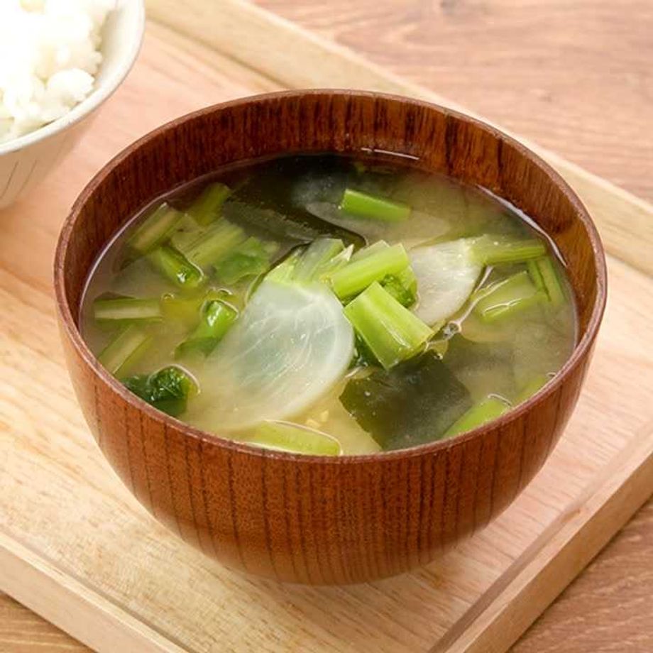 人気の具材かぶとわかめで味噌汁を作ります。やわらかく煮たかぶはトロッと甘く、だしのきいた味噌汁と相まって優しい味わいに仕上がります。かぶは茎も葉も活用して、具沢山に仕上げましょう。赤かぶでもお作りいただけます。今回はかぶの葉を使用していますが、小松菜などの青菜を代わりに使っても美味しいですよ。