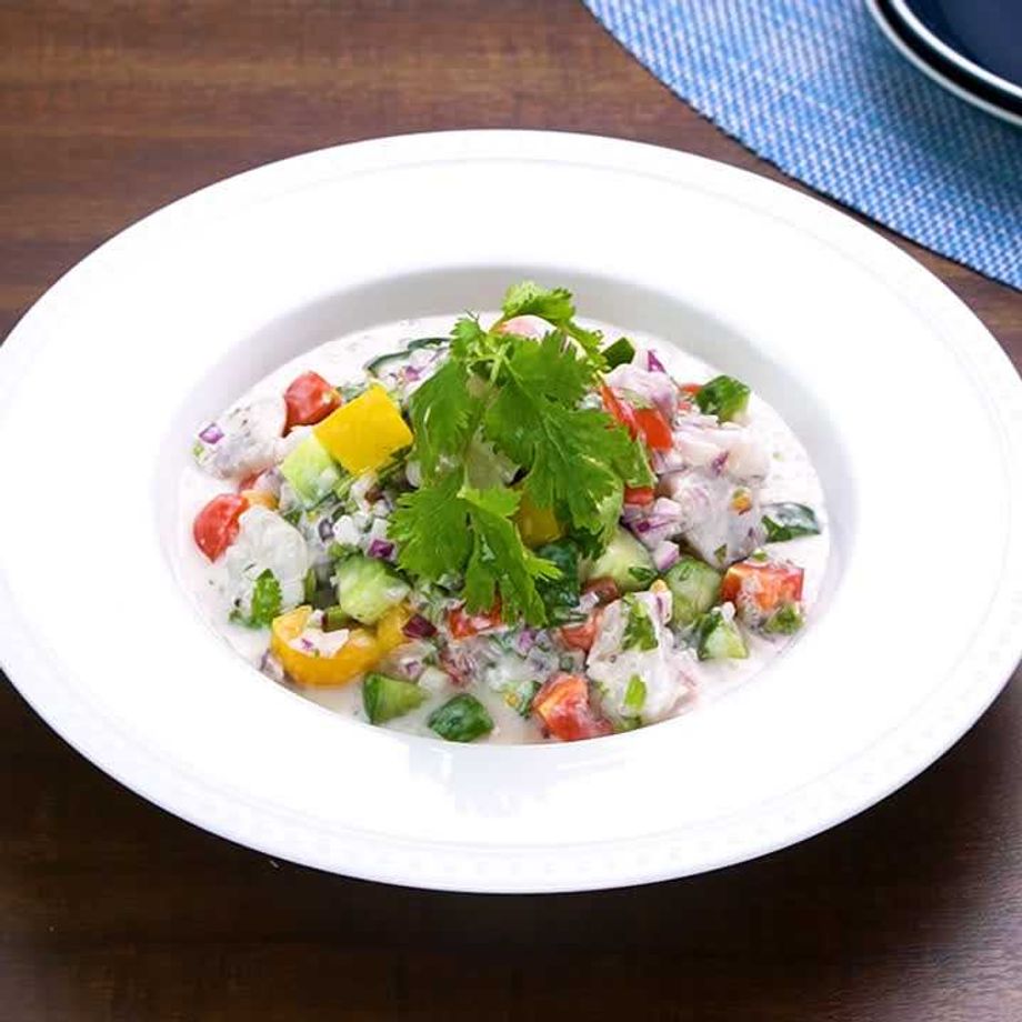フィジーの家庭料理「ココンダ」をご紹介♪生の白身魚をレモン汁でしめて、野菜とココナッツミルクであえたマリネのような料理です。レモンの酸味が爽やかで、野菜の彩りのおかげで食卓も華やかに♪ぜひお試しください!