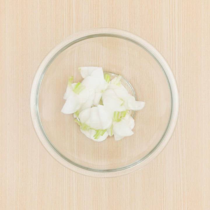 かぶは茎を1cm残して切り落とし、皮をむく。縦半分に切り、切り口を下にして薄切りにする。ボウルに入れて塩(塩もみ用)を加え、軽くもみこむ。10分おいてしんなりとさせ、水気をしっかりとしぼる。
