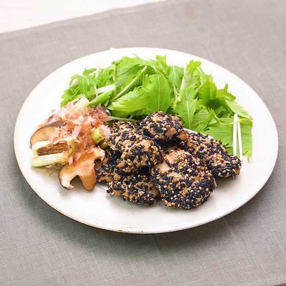 にんにくしょうゆで下味をつけたささみに黒ごまと白ごまをたっぷりとまぶして香ばしい味わいに仕上げた主菜です。しいたけやねぎも一緒に焼いて満足感のあるおかずにしましょう♪ 【本レシピはプレミアム献立用レシピです】プレミアム献立は管理栄養士が栄養バランスや塩分量を計算して、食のプロが献立を作成しています。主菜、副菜、汁物が揃ったプレミアム献立で本レシピを作るとより美味しく食べることができます。ぜひプレミアム献立で献立内容をチェックしてみてください。