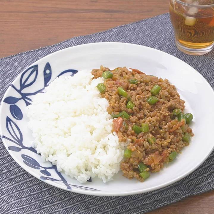 ドライカレーにさやいんげんを使って彩りと味にアクセントを♪スパイシーな風味が食欲をそそります。炒めるだけで簡単に作れるので挑戦しやすい一品です。