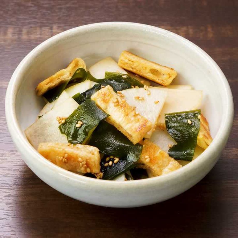 大根のシャキシャキ食感が楽しめる、さっぱりとした味わいの副菜です。油揚げは乾煎りしてカリッと仕上げるのがポイント♪ごま油の風味がくせになる一品です。 【本レシピはプレミアム献立用レシピです】プレミアム献立は管理栄養士が栄養バランスや塩分量を計算して、食のプロが献立を作成しています。主菜、副菜、汁物が揃ったプレミアム献立で本レシピを作るとより美味しく食べることができます。ぜひプレミアム献立で献立内容をチェックしてみてください。