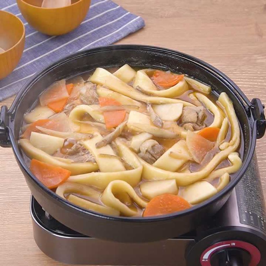 群馬県や埼玉県北部・秩父地方の郷土料理「おっきりこみ」をご紹介します。おっきりこみとは、別名お切り込み、煮ぼうとうとも呼ばれ、幅広の麺を使った煮込みうどんです。作り方は材料を一度油で炒めてから煮るのが特徴で、味付けは地域によって違いがありますが、今回のレシピではだしの効いたしょうゆベースのつゆで作ります♪具には根菜類がよく使用されますが、お好きな野菜でお作りいただけます。