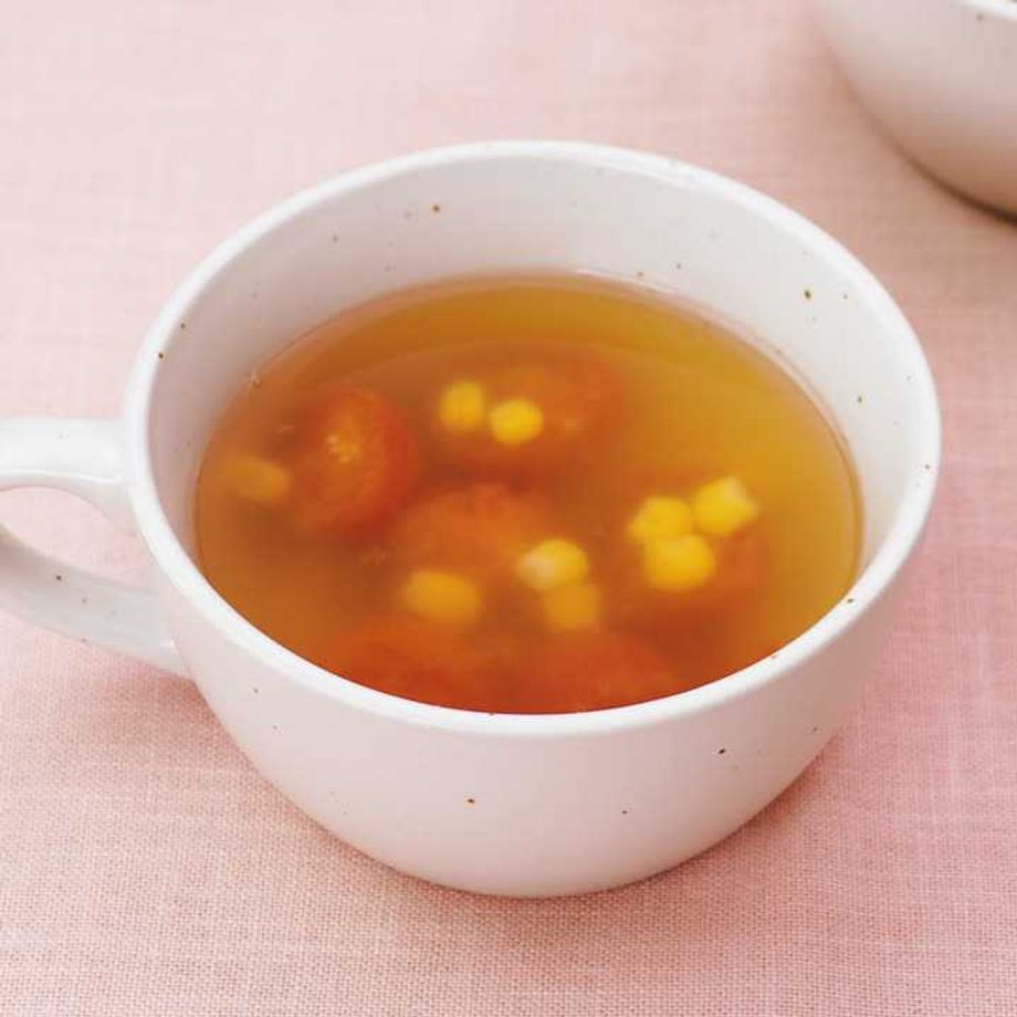 ミニトマトの旨味が出た、スープのレシピです。少ない材料で簡単に作れます♪ 【本レシピはプレミアム献立用レシピです】プレミアム献立は管理栄養士が栄養バランスや塩分量を計算して、食のプロが献立を作成しています。主菜、副菜、汁物が揃ったプレミアム献立で本レシピを作るとより美味しく食べることができます。ぜひプレミアム献立で献立内容をチェックしてみてください。