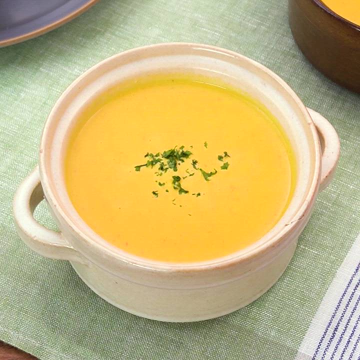 にんじんの旨味がぎゅっと詰まった、ほっこりと濃厚な味わいのスープはいかがでしょうか?冷たくしてもおいしくお召し上がりいただけます♪