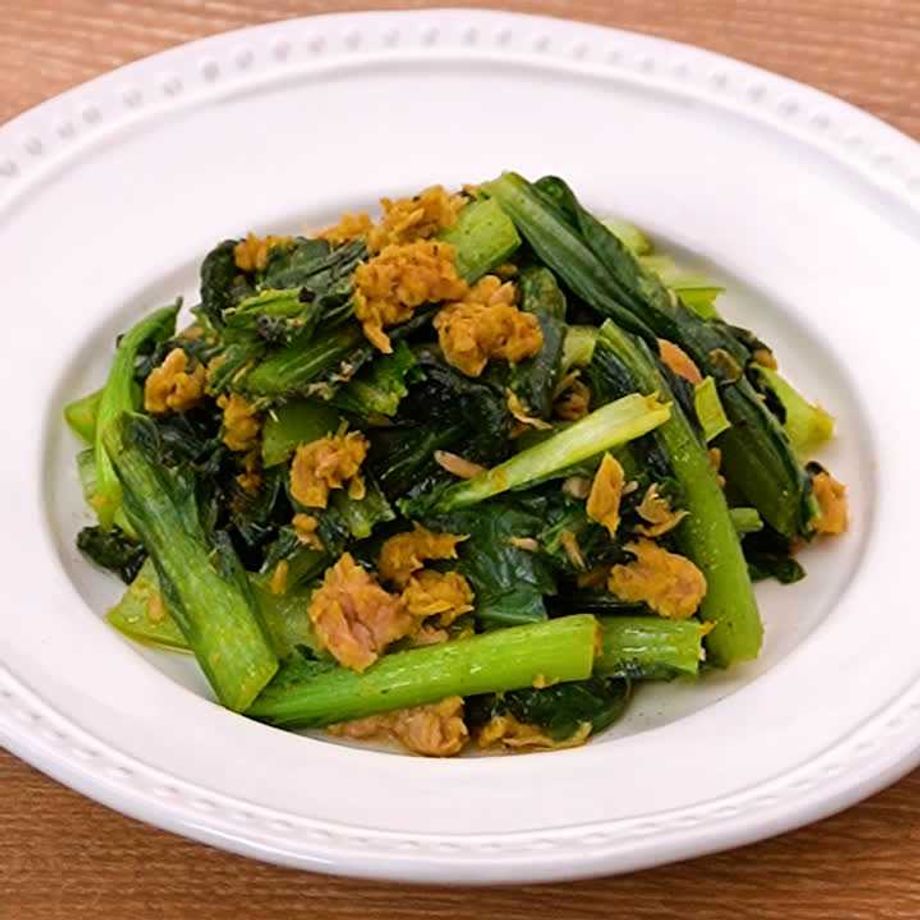 カレー風味の小松菜とツナの炒め物
