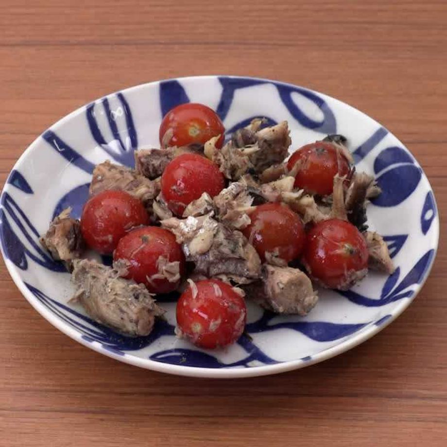 ミニトマトとサバを使ったおつまみレシピ!作り方はとっても簡単!材料を一緒に炒めるだけです。あと一品に悩んだときにもおすすめです。