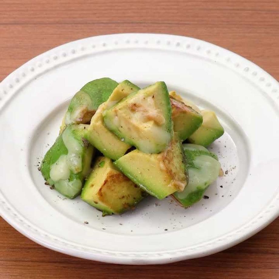 フライパンにサラダ油を入れて熱し、アボカドを入れて中火で1分ほど炒める。ポン酢しょうゆ、こしょうを加えて炒め合わせる。ピザ用チーズを全体にちらし、ふたをして溶けるまでおく。