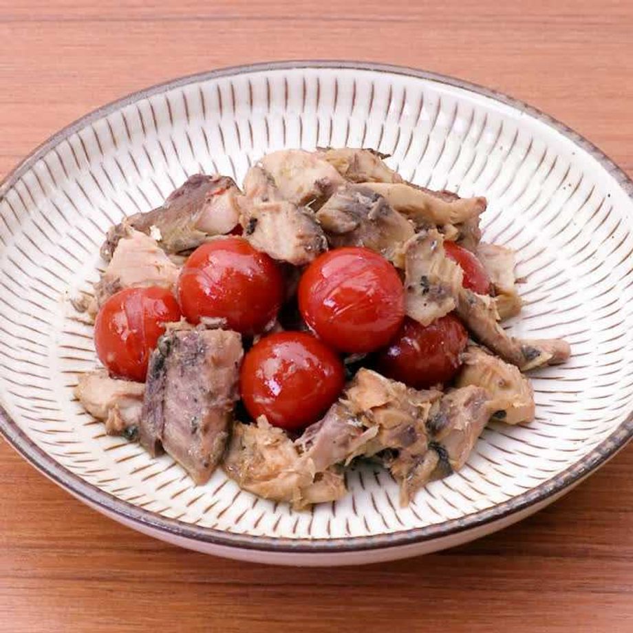 ミニトマトとサバを炒めるだけ!忙しい時におすすめの簡単メニューです♪炒めるだけなのであっという間に出来上がります♪