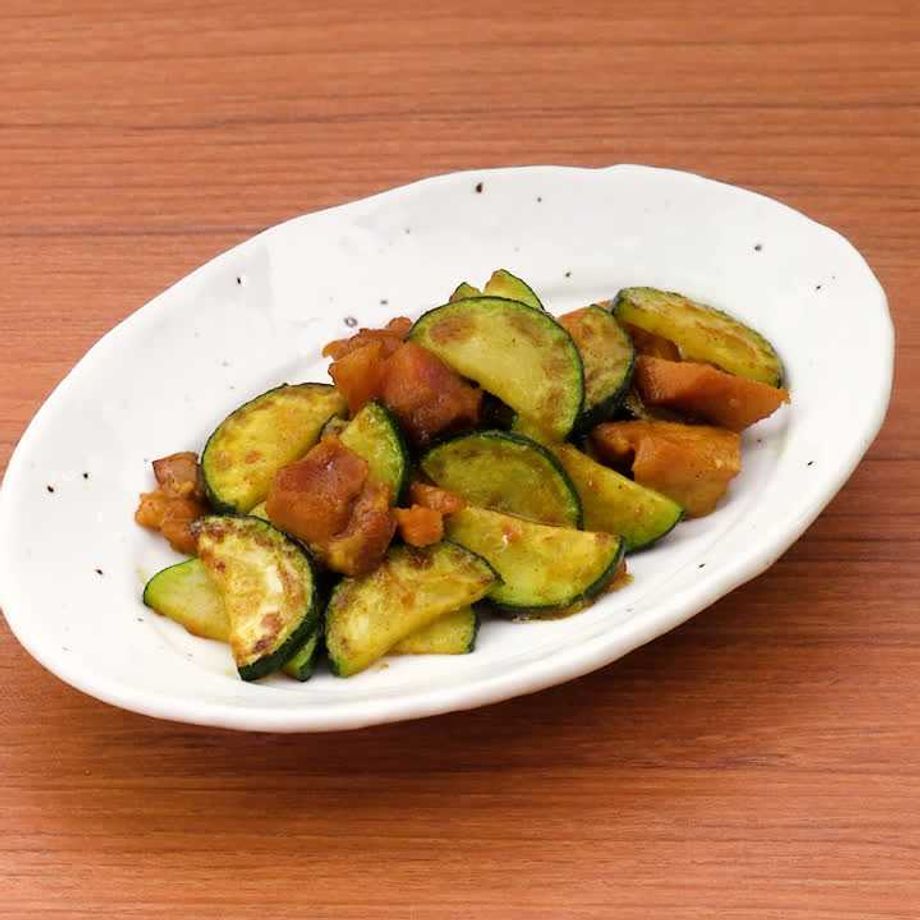 ズッキーニと焼き鳥缶のカレー炒め