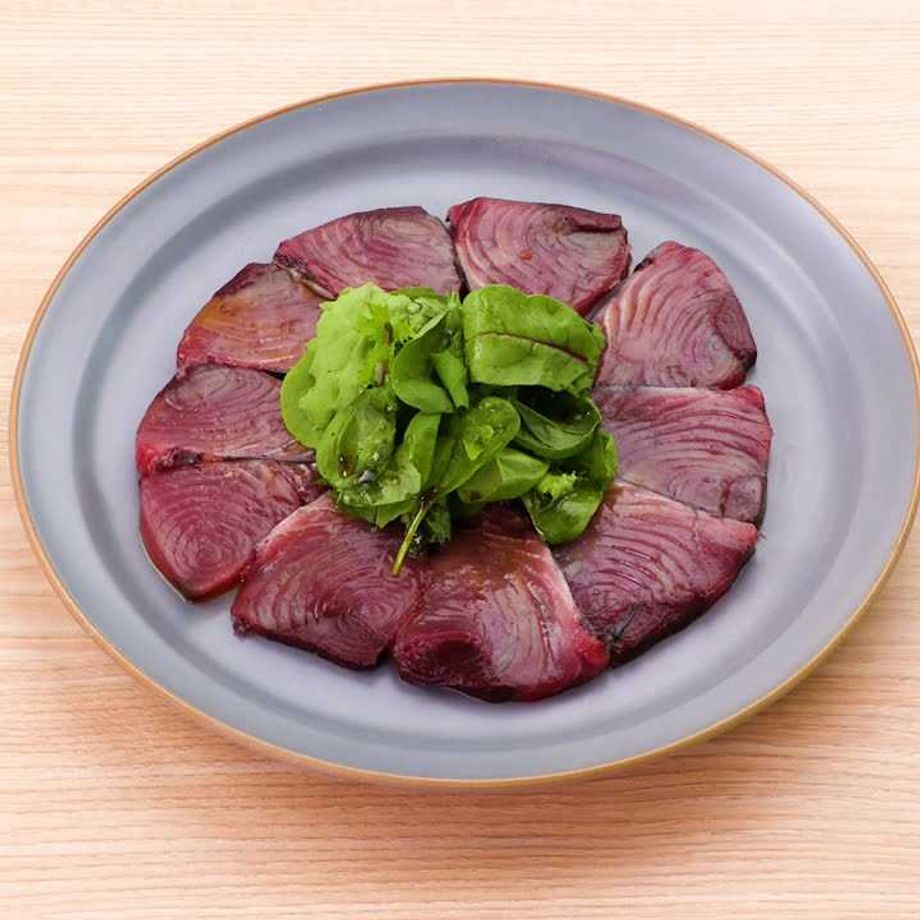 カツオのお刺身を中華サラダ風に仕上げました!野菜と一緒に召し上がってください♪ごま油の風味がカツオによく合い、あとを引くおいしさです!