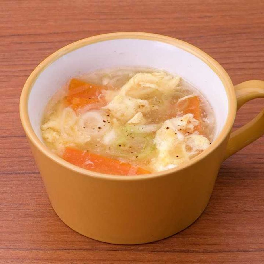 ねぎとにんじんがたっぷり入った、ふんわりと優しい味わいの中華風卵スープです。チャーハンなどに添えてお召し上がりください♪ 【減塩対策対応レシピ】※減塩対策ついてはQ&Aをご参照ください。