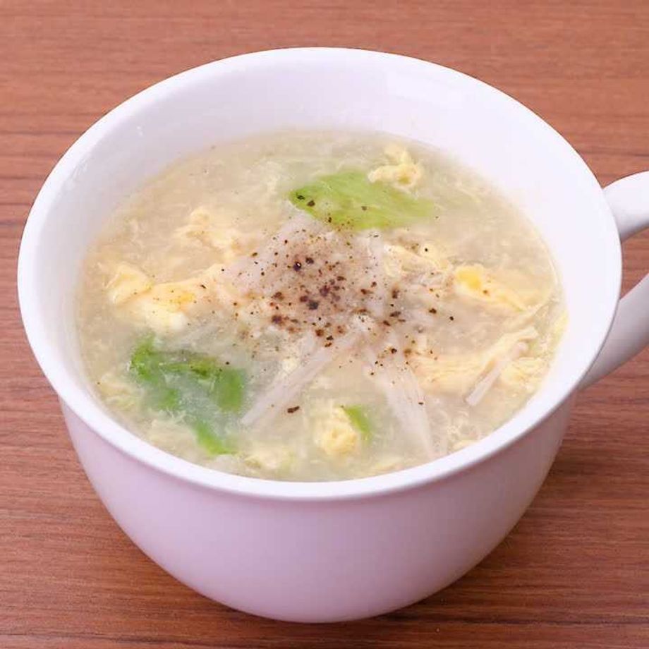 レタスなどが入った中華スープ♪卵を加えたら大きく混ぜることがふわふわに仕上げるポイントです!すぐにできるのでもう一品欲しい時に簡単に作れます♪ 【減塩対策対応レシピ】※減塩対策ついてはQ&Aをご参照ください。