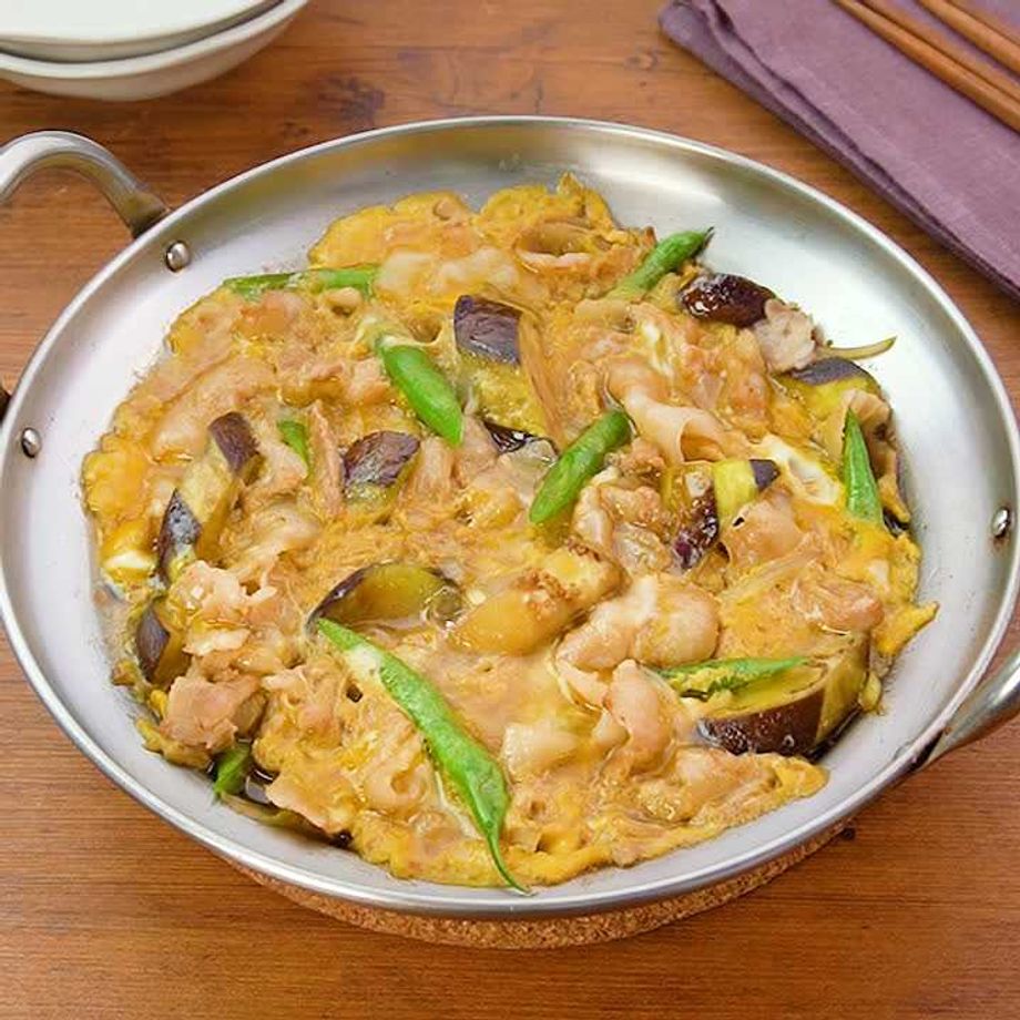 豚バラとナスの卵とじ