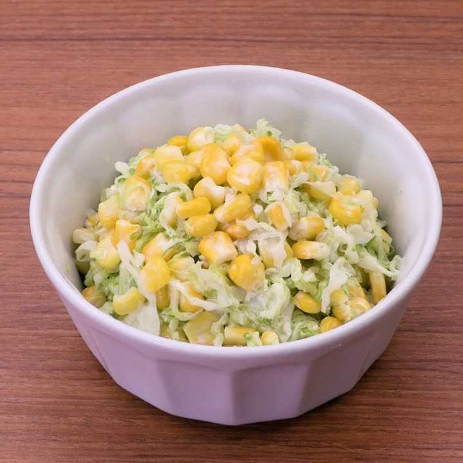 キャベツは細切りにする。ボウルにキャベツ、塩(小さじ1/4)を入れて混ぜ、しんなりするまで5分ほどおいて水気をしっかりとしぼる。コーンは解凍し、水気をふきとる。