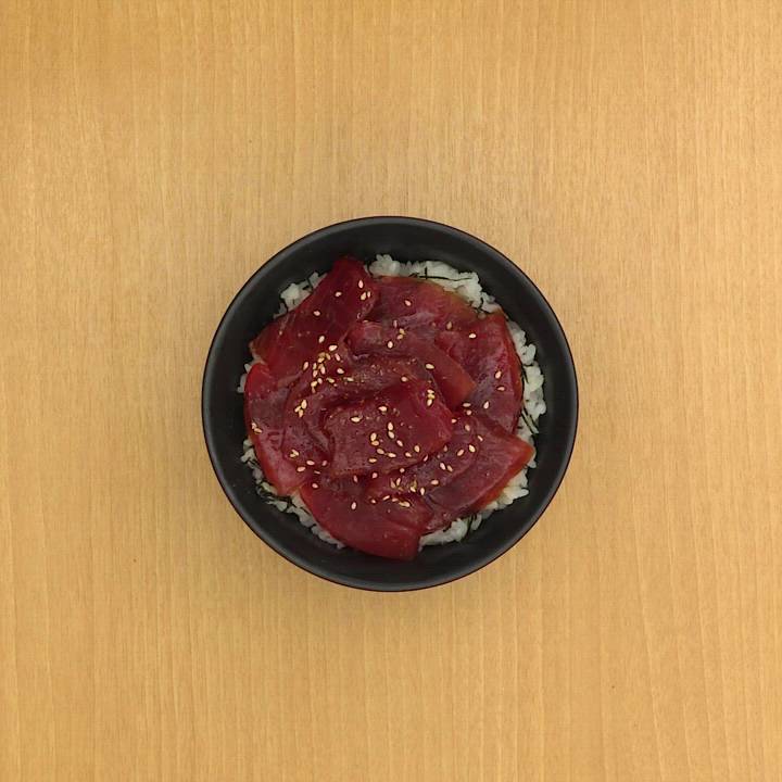 器にごはんを盛り、刻みのりをちらす。1のマグロをのせる。白いりごまをふる。