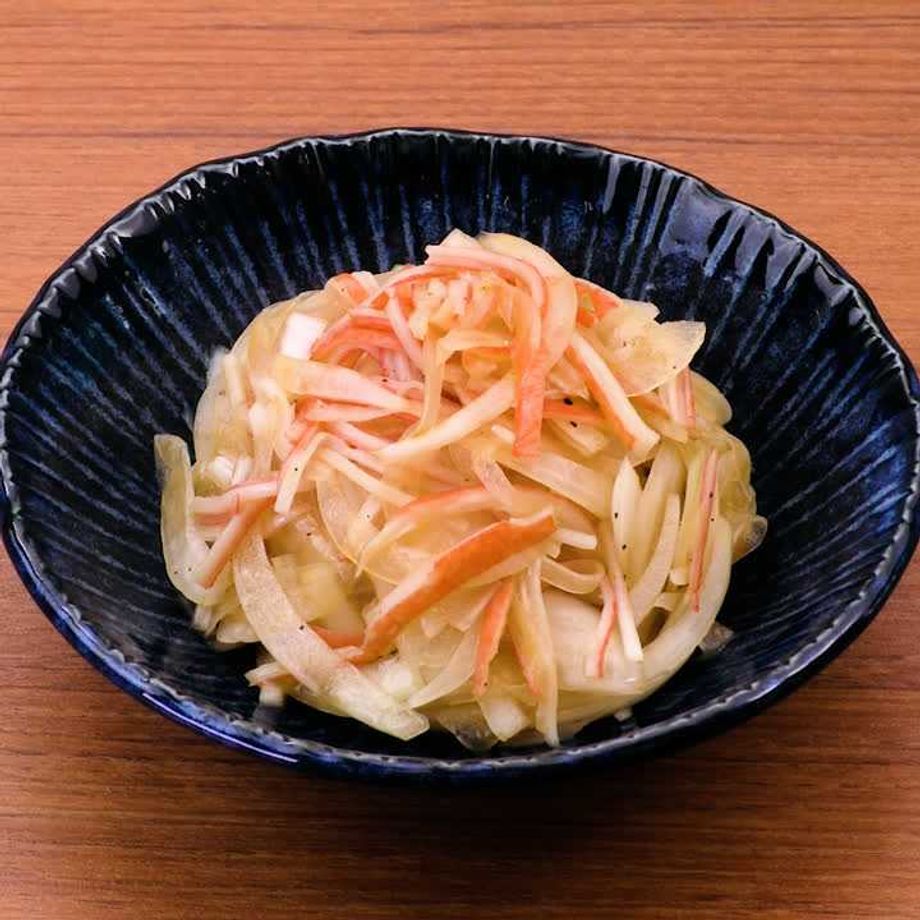 玉ねぎのシャキシャキ食感がクセになるサラダレシピをご紹介!ポン酢のさっぱりドレッシングをかけてお召し上がりください。今日の一品にいかがでしょうか♪