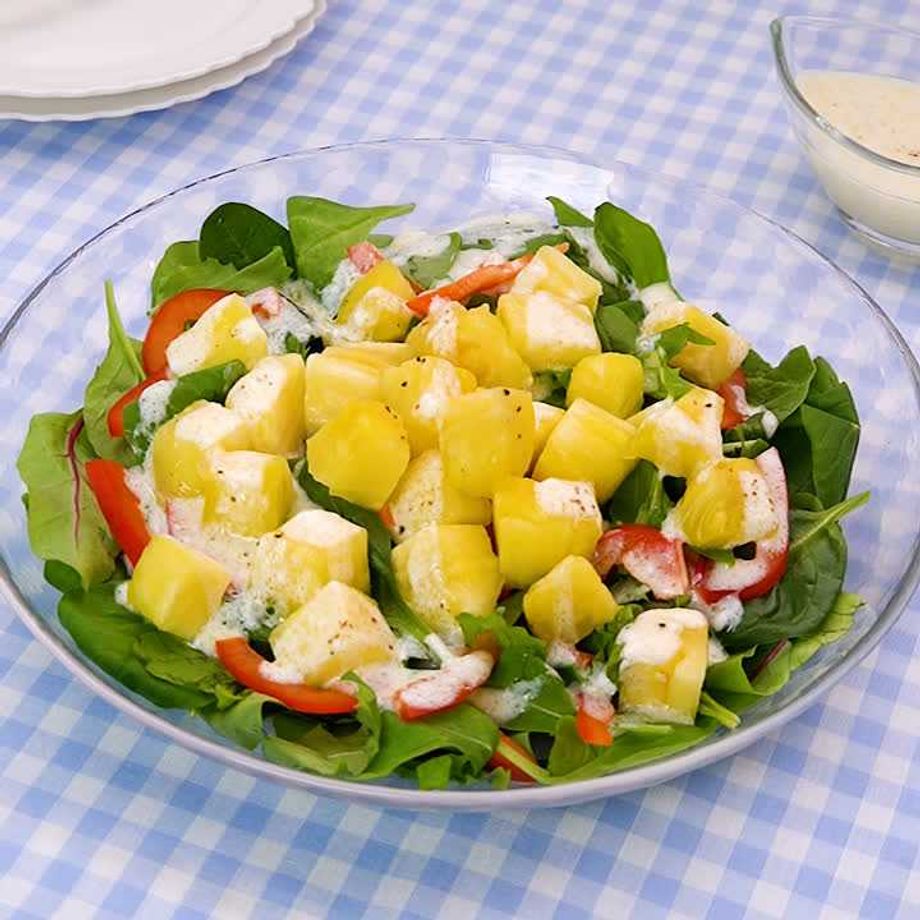 パイナップルを使った彩りきれいなサラダをご紹介します。ヨーグルト風味の爽やかなドレッシングと甘酸っぱいパイナップルがベストマッチ♪ちょっぴり豪華でおしゃれに見えるのに、簡単に作れる嬉しい一品です!