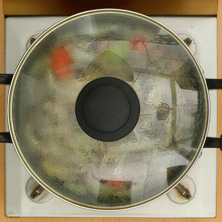 鍋にサラダ油を入れて中火で熱し、牛肉を入れて肉の色が変わるまで炒める。玉ねぎ、にんじん、しめじ、マッシュルームを加えて油がまわるまで炒める。水を加えて煮立ったらアクを取り除き、ふたをして20分ほど弱めの中火で煮る。