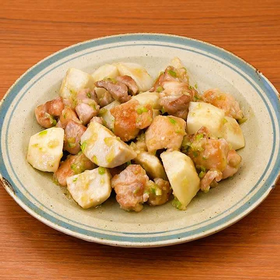 フライパンに半量のごま油(大さじ1/2)を入れて中火で熱し、鶏肉の皮目を下にして入れて焼き色がつくまで焼いて裏返す。肉に火が通るまでさらに2〜3分焼く。端に寄せ、残りのごま油(大さじ1/2)を入れて里芋を加えて焼き色がつくまで焼く。