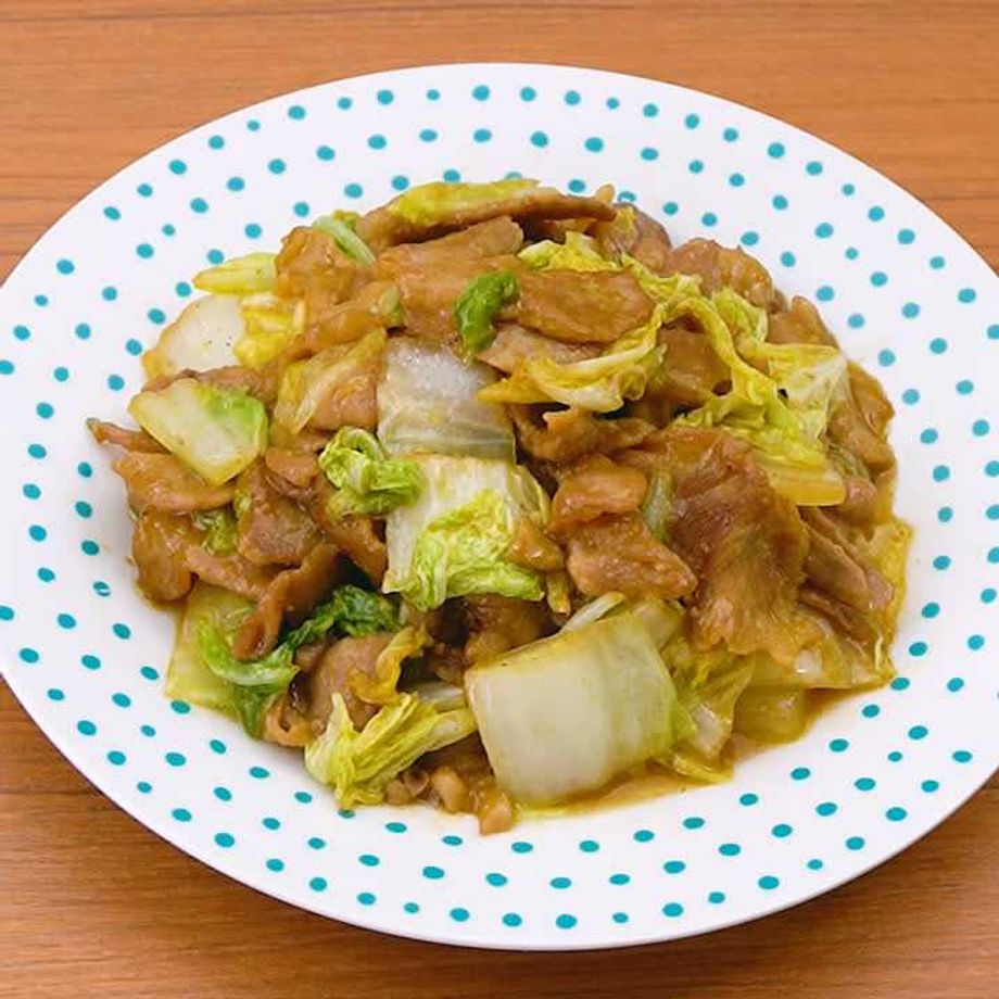 フライパンにサラダ油を入れて中火で熱し、豚肉を入れて肉に火が通るまで炒める。白菜を加えてしんなりするまで炒める。
