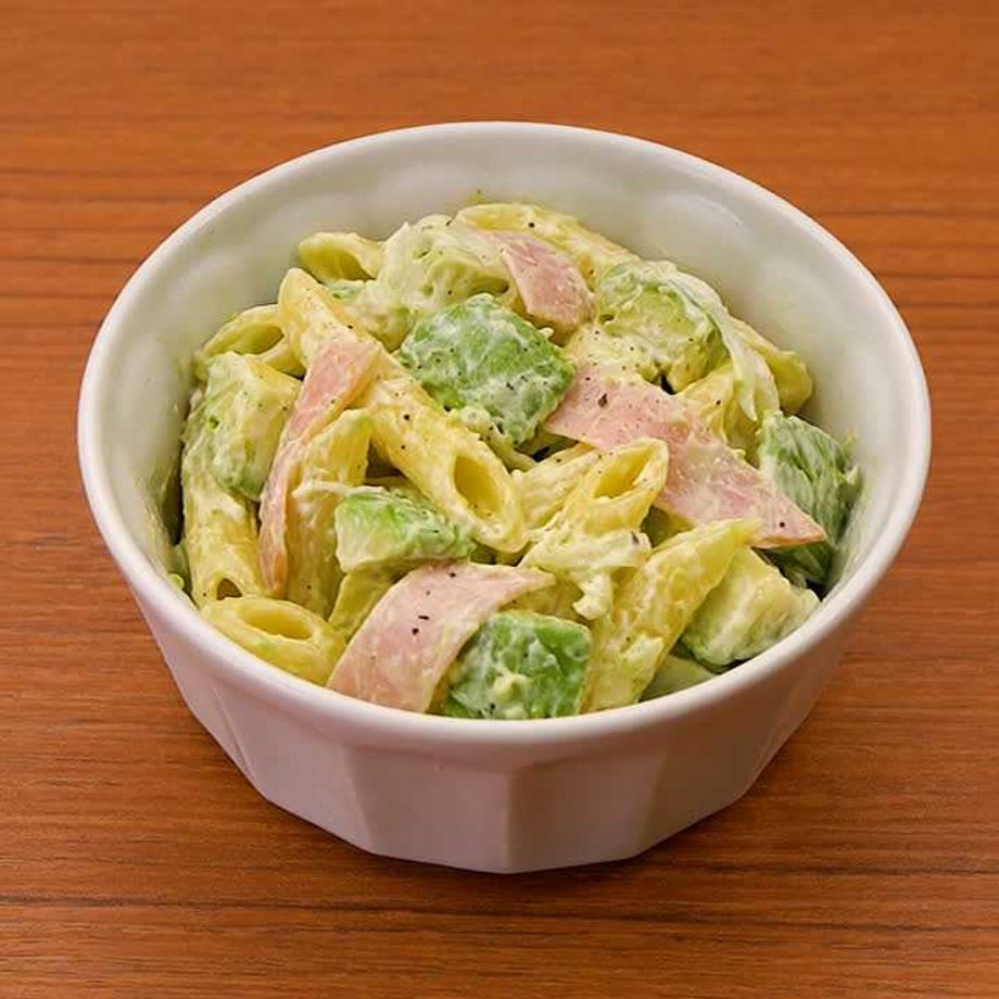 パパッと作れるマカロニサラダをご紹介!コクのあるアボカドが具材とからみあい、ついつい手が伸びる一品です。今日の献立にいかがでしょうか♪【減塩対策対応レシピ】※減塩対策ついてはQ&Aをご参照ください。