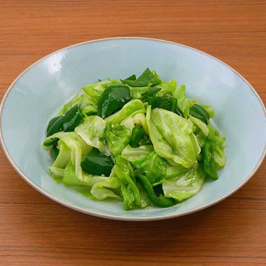 キャベツは一口大に切る。ピーマンは縦半分に切って種とわたを取り除き、一口大に切る。