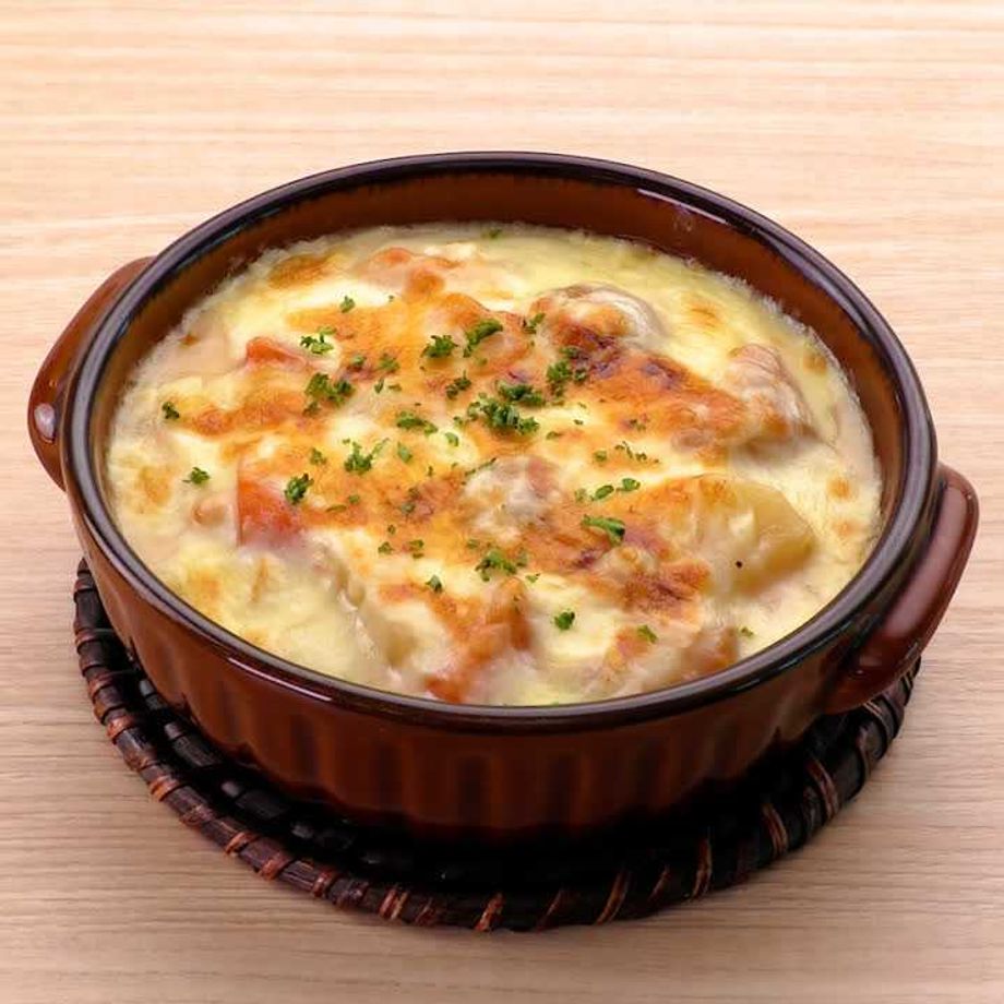 - 器に冷凍ご飯とバターをレンジでチンして ケチャップなど混ぜて平にならして シチュー、チーズを乗せると 洗い物を減らせました。 雑に作ってもとても美味しかったので またシチュー作った時は食べたいです!