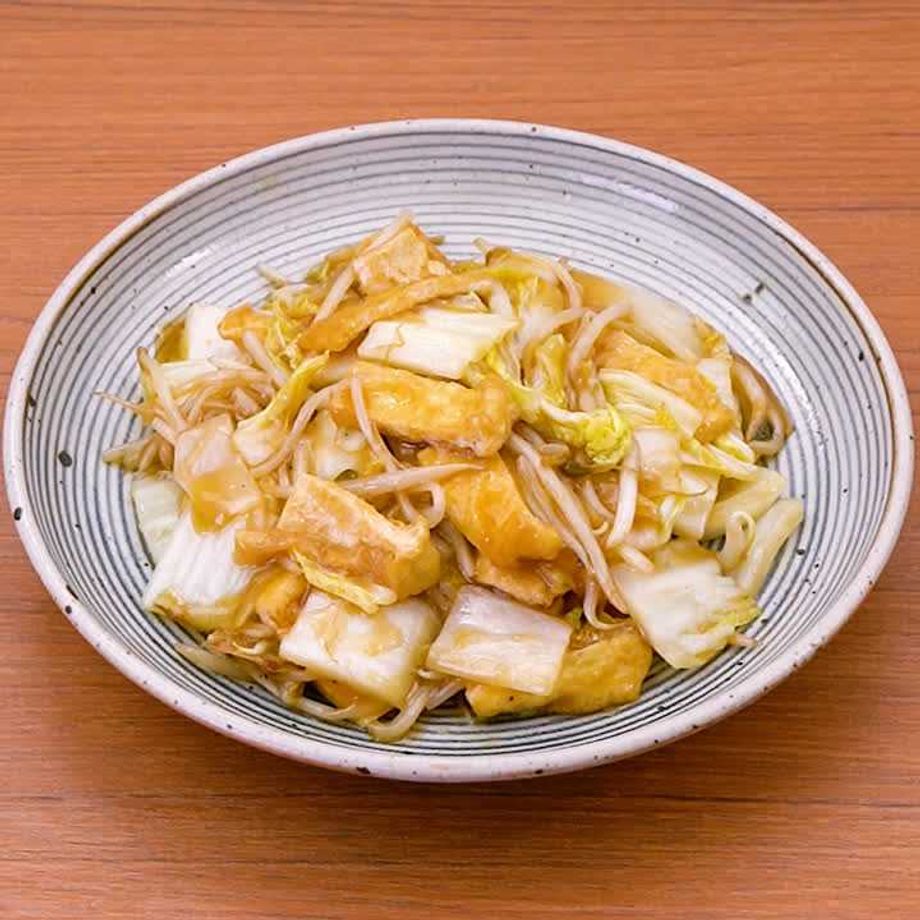 油揚げ、白菜の葉、もやしを加えて2分ほど炒める。☆をひと混ぜして加え、とろみがつくまで炒める。