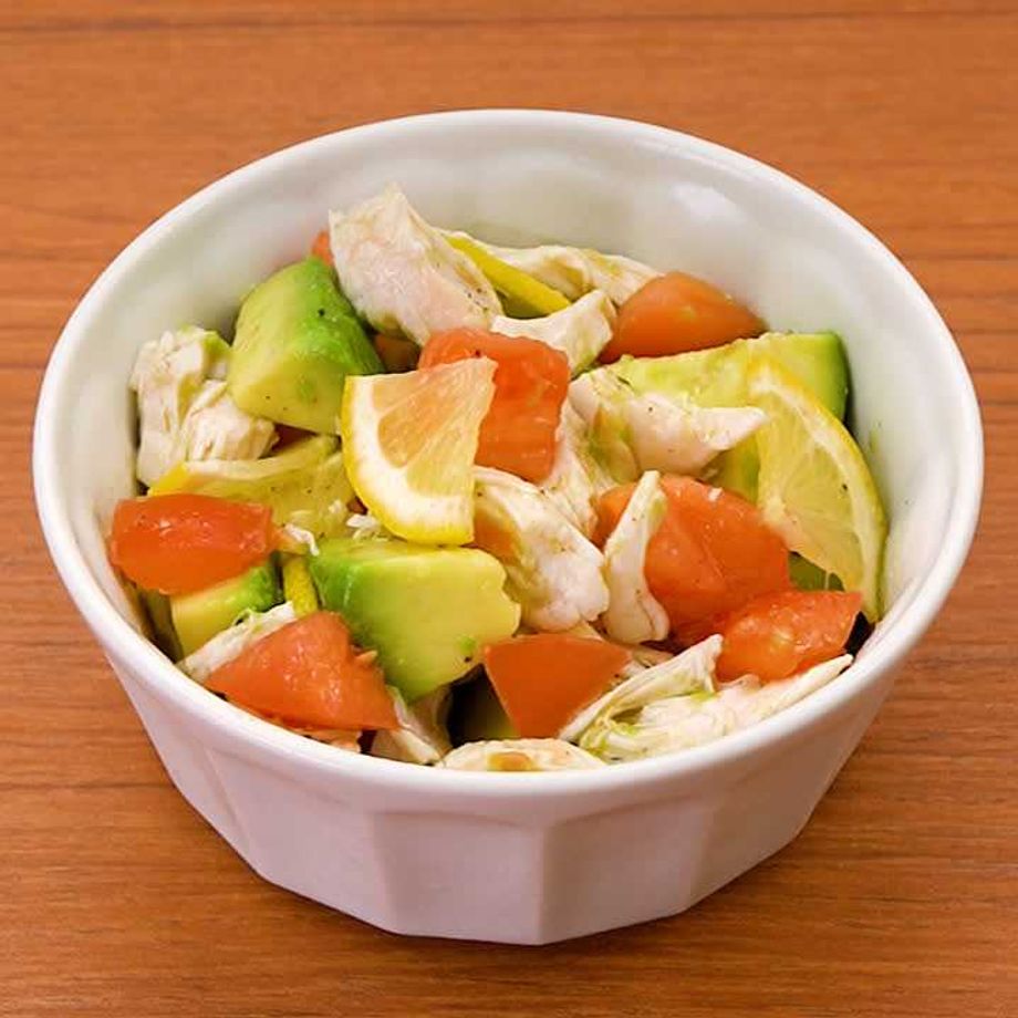 アボカド、トマト、ささみ、カットしたレモンを加えて混ぜる。