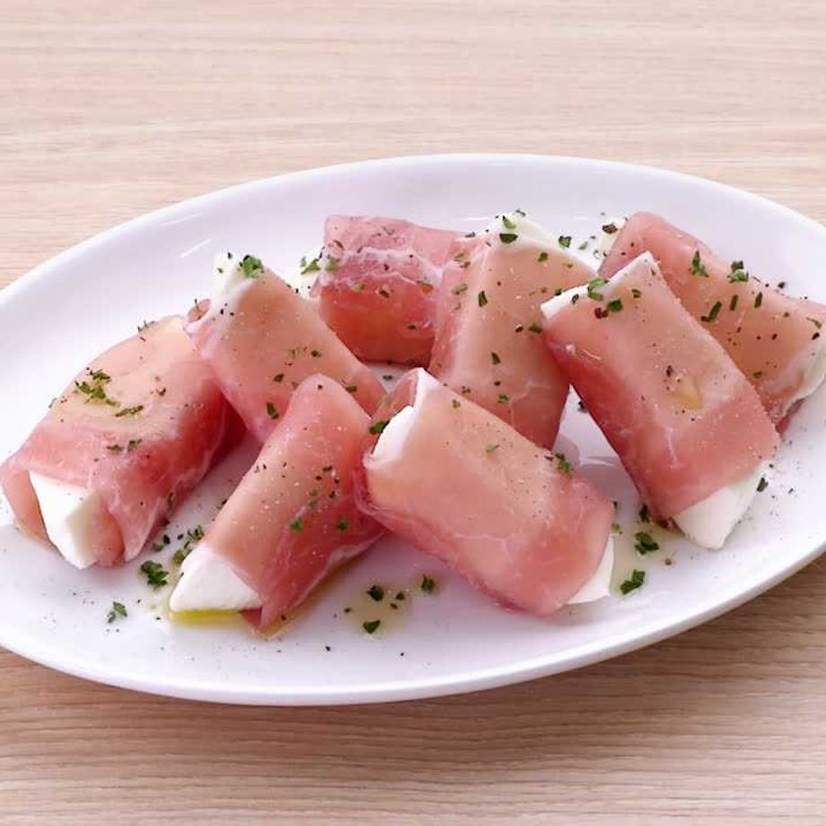 モッツァレラチーズを生ハムでくるっと巻くだけ!シンプルなのにとってもおしゃれで、ワインのお供やおもてなし料理にもおすすめです♪