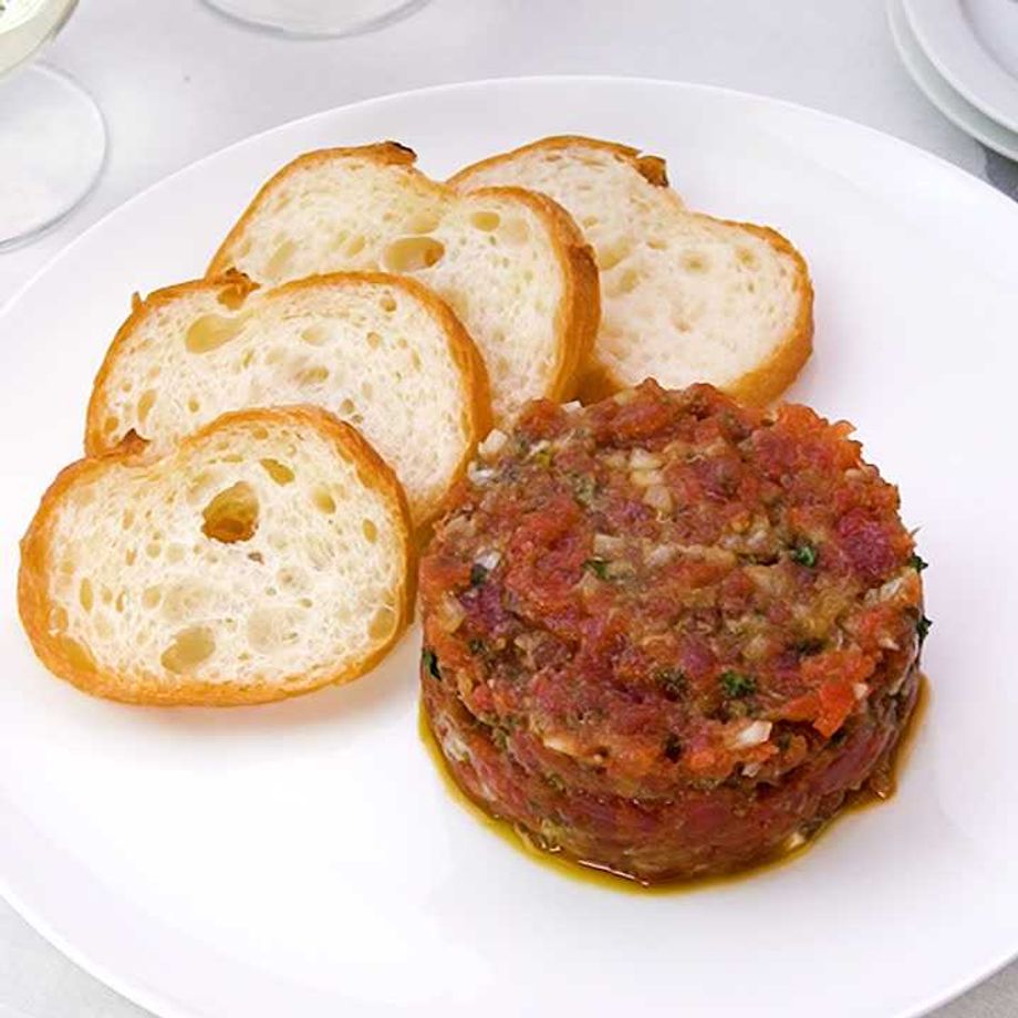 刺身用のマグロを包丁でよく叩いて作る洋風のタルタルはパーティーなどのおもてなしにもぴったり♪バゲットにのせてお楽しみください。【減塩対策対応レシピ】※減塩対策についてはQ&Aをご参照ください。