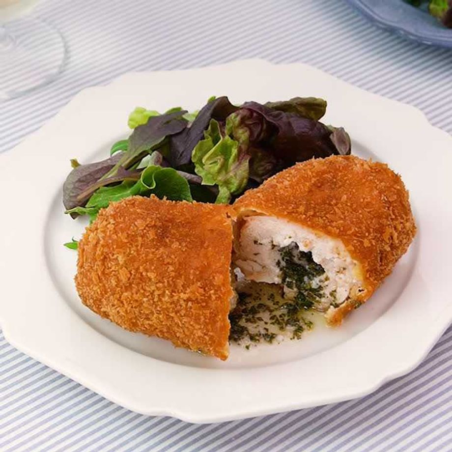 バターを鶏肉で包んで衣をつけてサクッと揚げた、食べ応えのある一品!ナイフで切ると中からバターがじゅわ〜っとあふれ出し、食欲をそそります。ぜひお試しください♪【減塩対策対応レシピ】※減塩対策についてはQ&Aをご参照ください。