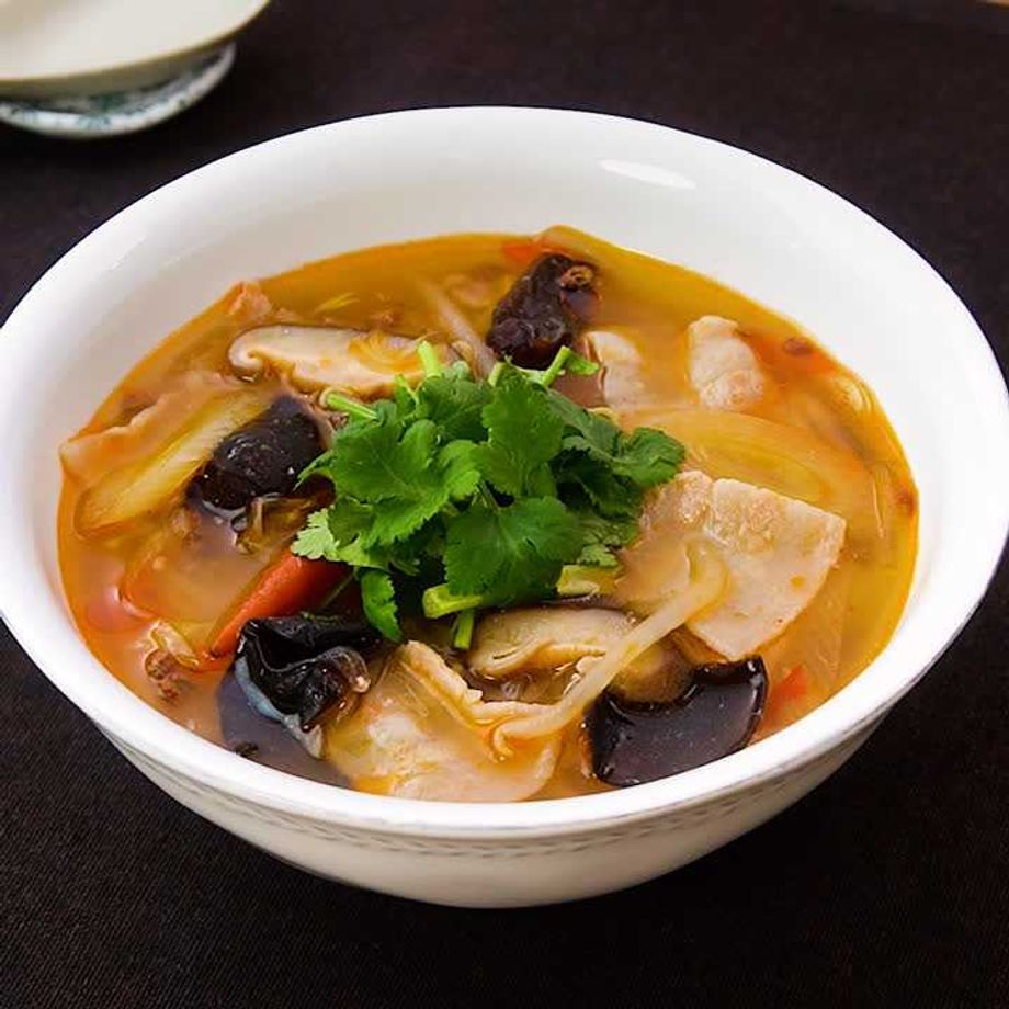 鍋に水、酒、豚肉を入れて中火で熱し、煮立ったらアクを取り除く。☆、唐辛子、花椒を加えて混ぜ、再び煮立ったら春雨、しいたけ、もやし、ねぎ、きくらげを加えて混ぜる。煮立ったらふたをして7〜8分ほど弱火で煮る。