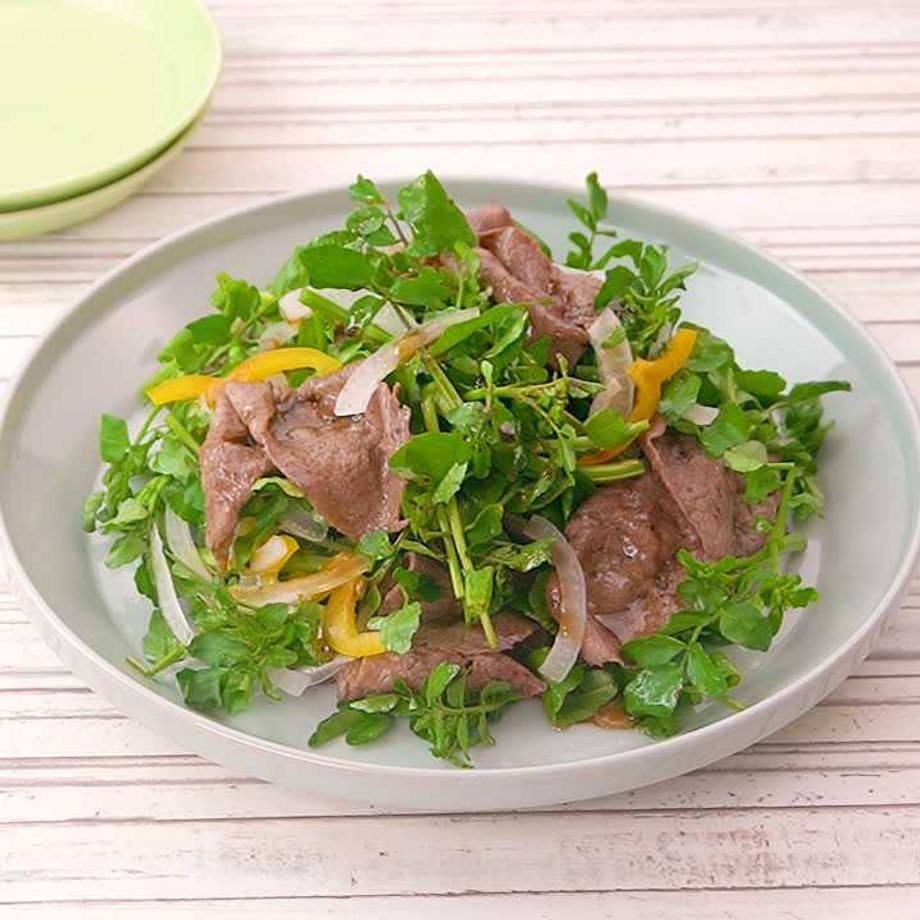 牛しゃぶしゃぶ肉を使ったおしゃれで豪華なサラダです。肉のうまみにクレソンの苦味、バルサミコの酸味とコクが効いたドレッシングがよく合います♪ワインのおつまみにも!