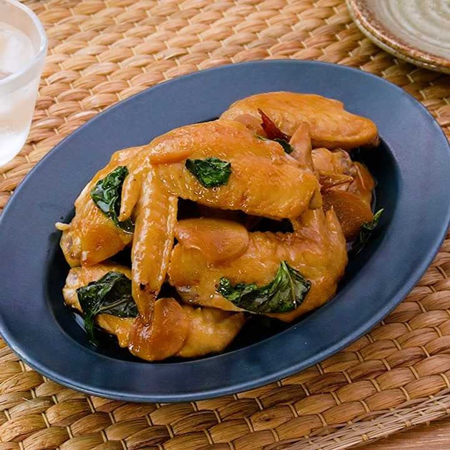砂糖としょうゆの甘辛い味わいに、バジルの香りがさわやかなおかずのご紹介!鶏もも肉を使うレシピが多い台湾の一品ですが、今回は満足感のある手羽先で♪【減塩対策対応レシピ】※減塩対策についてはQ&Aをご参照ください。
